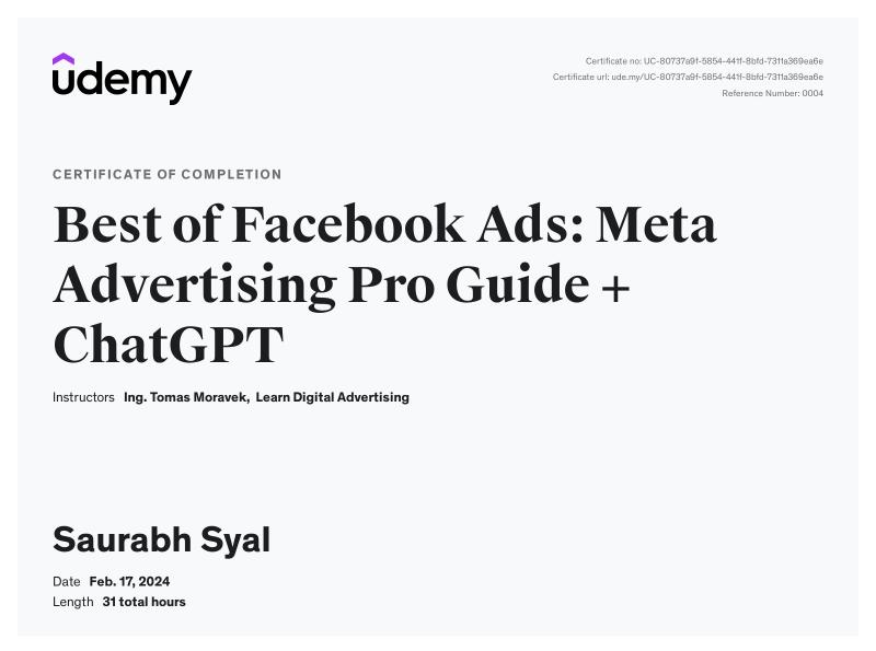 "Saurabh Syal, whom I had the pleasure of working with as a Social Media Manager, impressed me with his wealth of knowledge in social media optimization, content creation, and running successful advertising campaigns."
